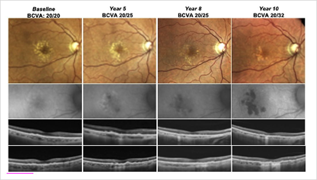 - Year 8: Spontaneous regression of drusen in the perifoveal region;
