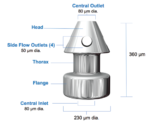 Like the iStent, the iStent inject bypasses the trabecular meshwork to gain access to Schlemm canal. It is the only MIGS device to deliver two multidirectional stents designed to restore natural outflow by accessing multiple collector channels. The iStent inject has a central inlet and four side flow outlets to optimize flow and collector channel access without relying on extreme dilation (Figure 1).