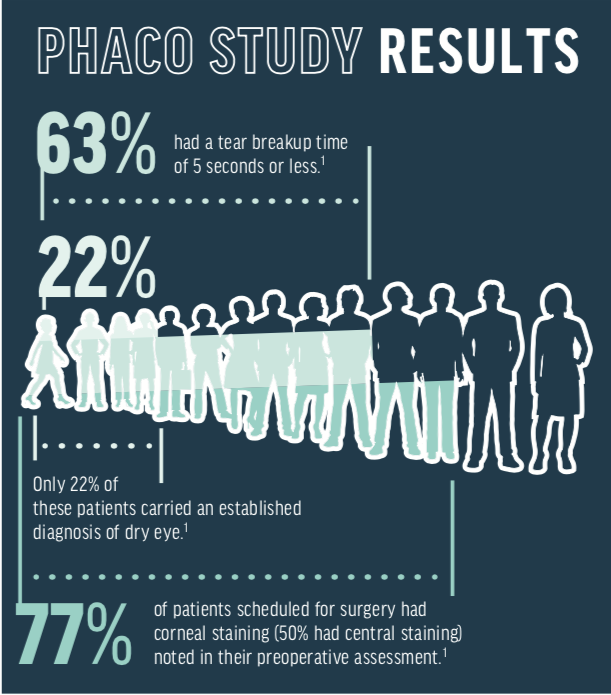 - Trattler WB, Majmudar PA, Donnenfeld ED, McDonald MB, Stonecipher KG, Goldberg DF. The Prospective Health Assessment of Cataract Patients’ Ocular Surface (PHACO) study: the effect of dry eye. Clin Ophthalmol. 2017;11:1423-1430.