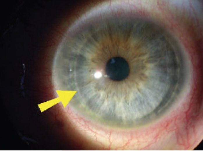 We carefully examine for complications at this visit. If vision is unexpectedly poor (we use 20/60 as a reference point), this is typically a result of corneal dryness or, less frequently, a LASIK flap issue such as wrinkling or displacement (Figure 1). Corneal dryness typically manifests as a small amount of superficial punctate keratitis or a reduced tear meniscus.