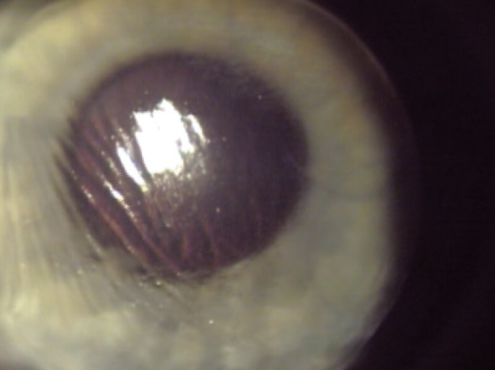 Figure 2. Note the significant striae in this flap, suggesting that it is not flush with the stromal bed, which will result in decreased and distorted vision. This is another indication for immediate flap repositioning. If the flap is left alone and heals improperly, chronic issues with visual acuity can develop, and there can be more complications involved with trying to fix the problem later on.