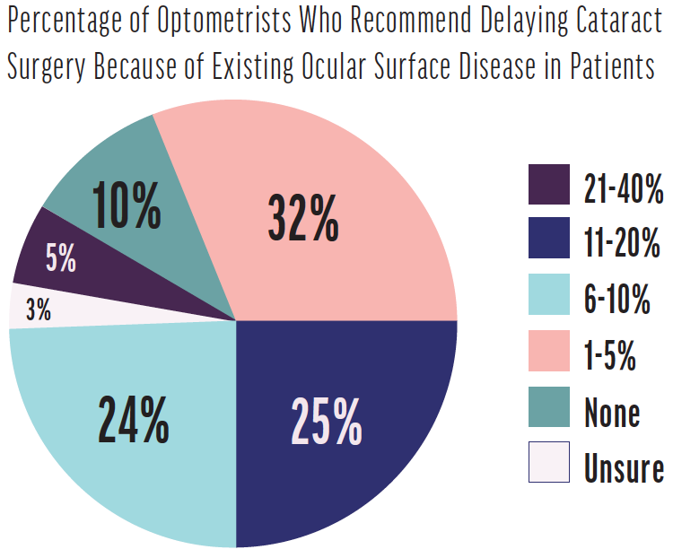 Figure. On average, 8% of comanaged cataract surgery patients are delayed due to ocular surface disease. Source: Modern Optometry2019 Clinical Survey.