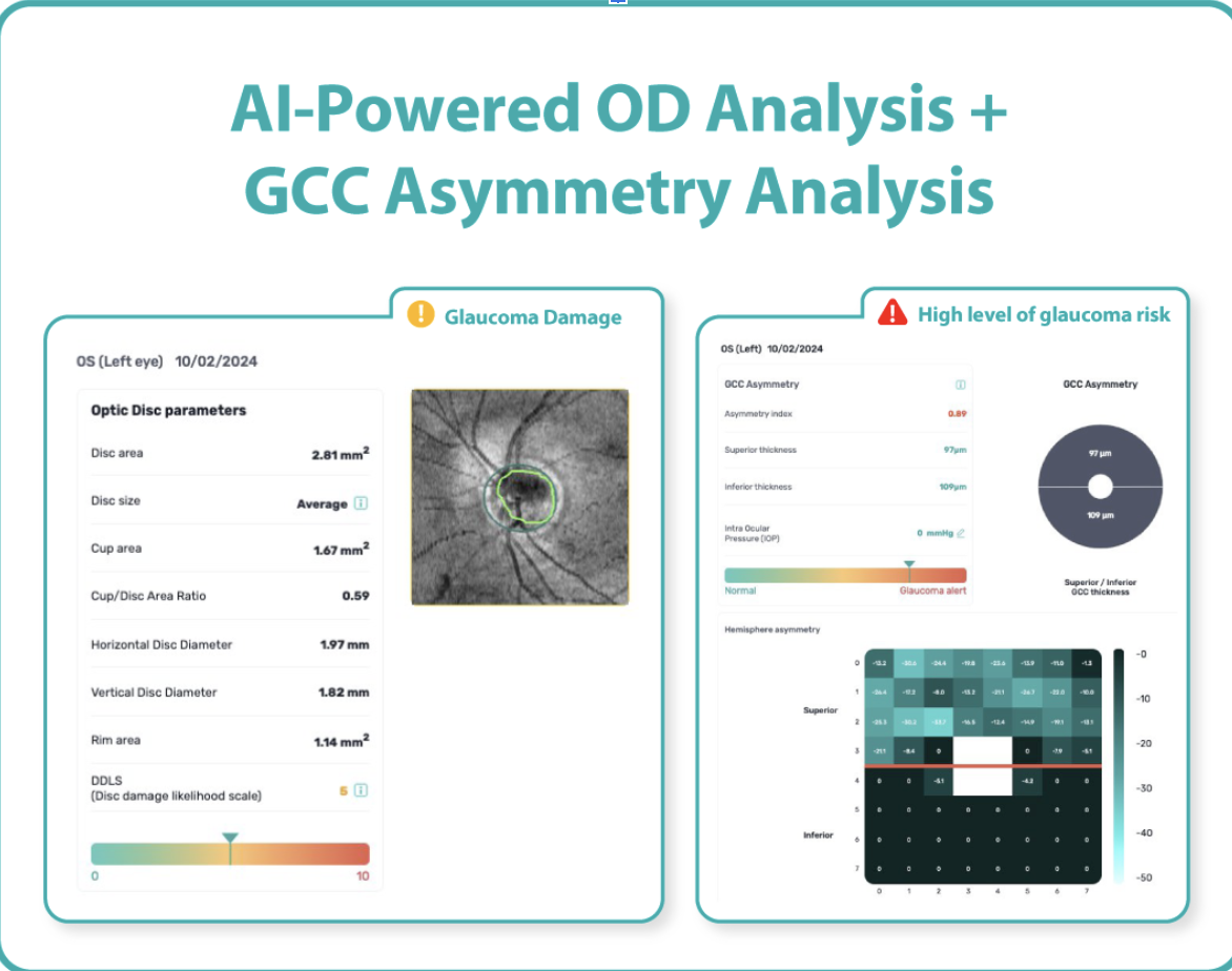 Combining GCC Asymmetry and Advanced Optic Disc analysis is designed to allow eye care practitioners (ECPs) to make faster evaluations and explore a wider range of treatment options. This streamlined approach empowers ECPs with timely, actionable data, ultimately improving patient outcomes and care.
