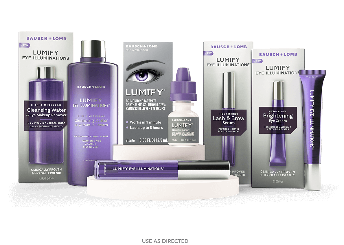 The Lumify Eye Illuminations product line, which builds on the Lumify redness reliever eye drops, includes: