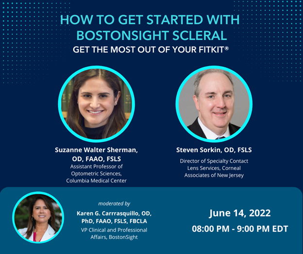 BostonSight Scleral will host a one-hour scleral lens webinar on Tuesday, June 14, at 8 pm EDT with Suzanne Walter Sherman, OD, FAAO, and Steven Sorkin, OD, on how to get the most out of a BostonSight Scleral FitKit.