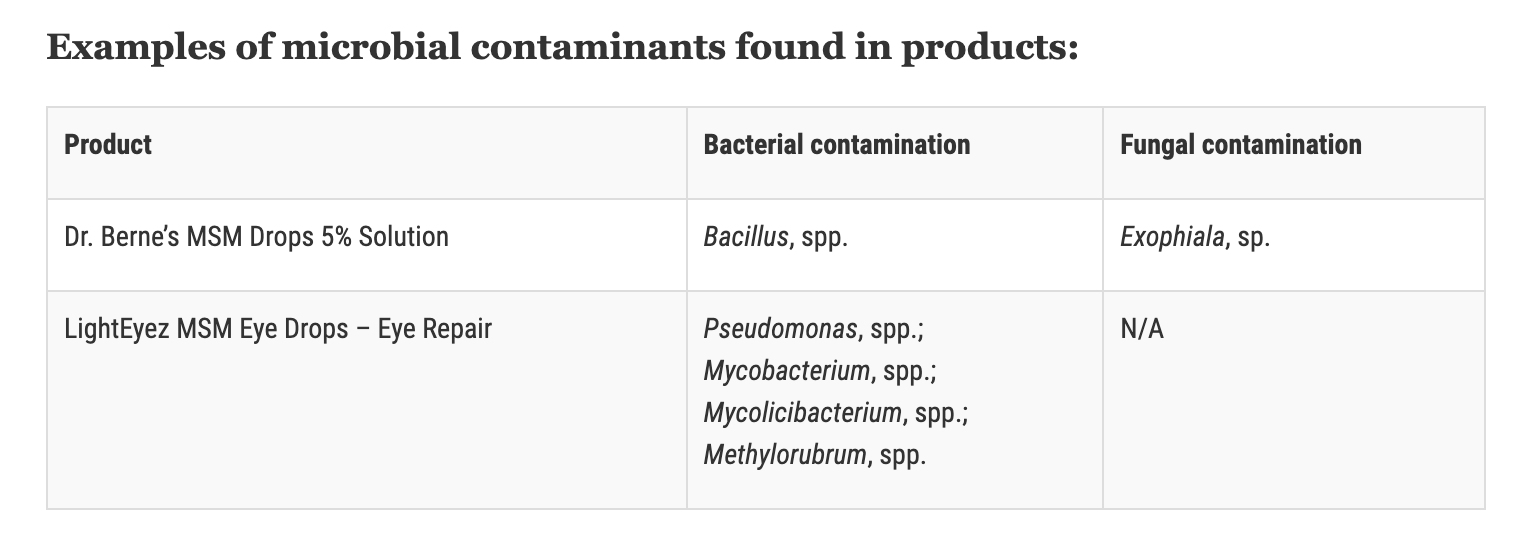 FDA Warns Consumers Not to Purchase or Use Certain MSM Eye Drops Due to Contamination