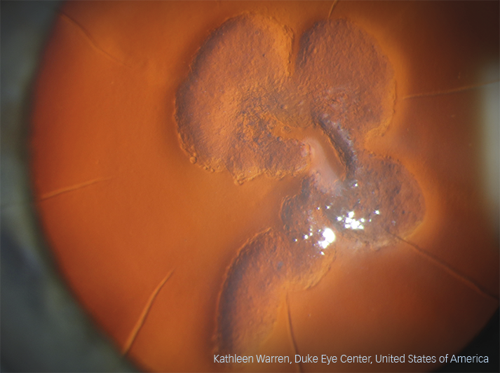 Third place has been awarded to Kathleen Warren from Duke Eye Center, Durham NC, in the USA. Her winning image displays a case of epithelial ingrowth, taken with a Haag-Streit BX 900 slit lamp. Taken with large magnification, the image is not only detail rich and fully in focus, but it has also been chosen for its artistic qualities. Ms. Warren will receive a Peak Design Everyday Backpack as 3rd prize.