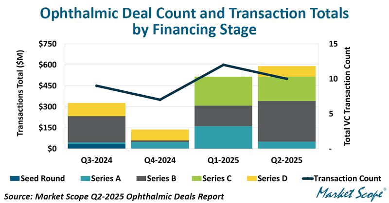 The ophthalmic industry continues to command the attention of investors with $620 million raised across 13 transactions in Q2 2025, according to Market Scope’s latest Ophthalmic Deals Report. However, the investment dollars are down from Q2-2024 and Q1-2025, reflecting a more selective, strategic deployment of capital.