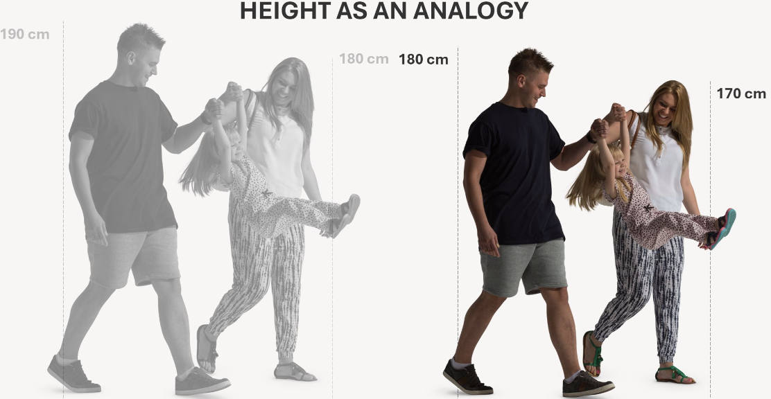 To better understand the importance of tracking glaucoma, RetinaLyze draws an analogy to height measurements. For example, a person who was 1.80 meters tall a year ago but is now 1.70 meters tall remains within the normal height range. However, the decrease indicates a potential underlying issue. Similarly, a patient’s glaucoma status can worsen even when their metrics are still within statistically normal ranges.