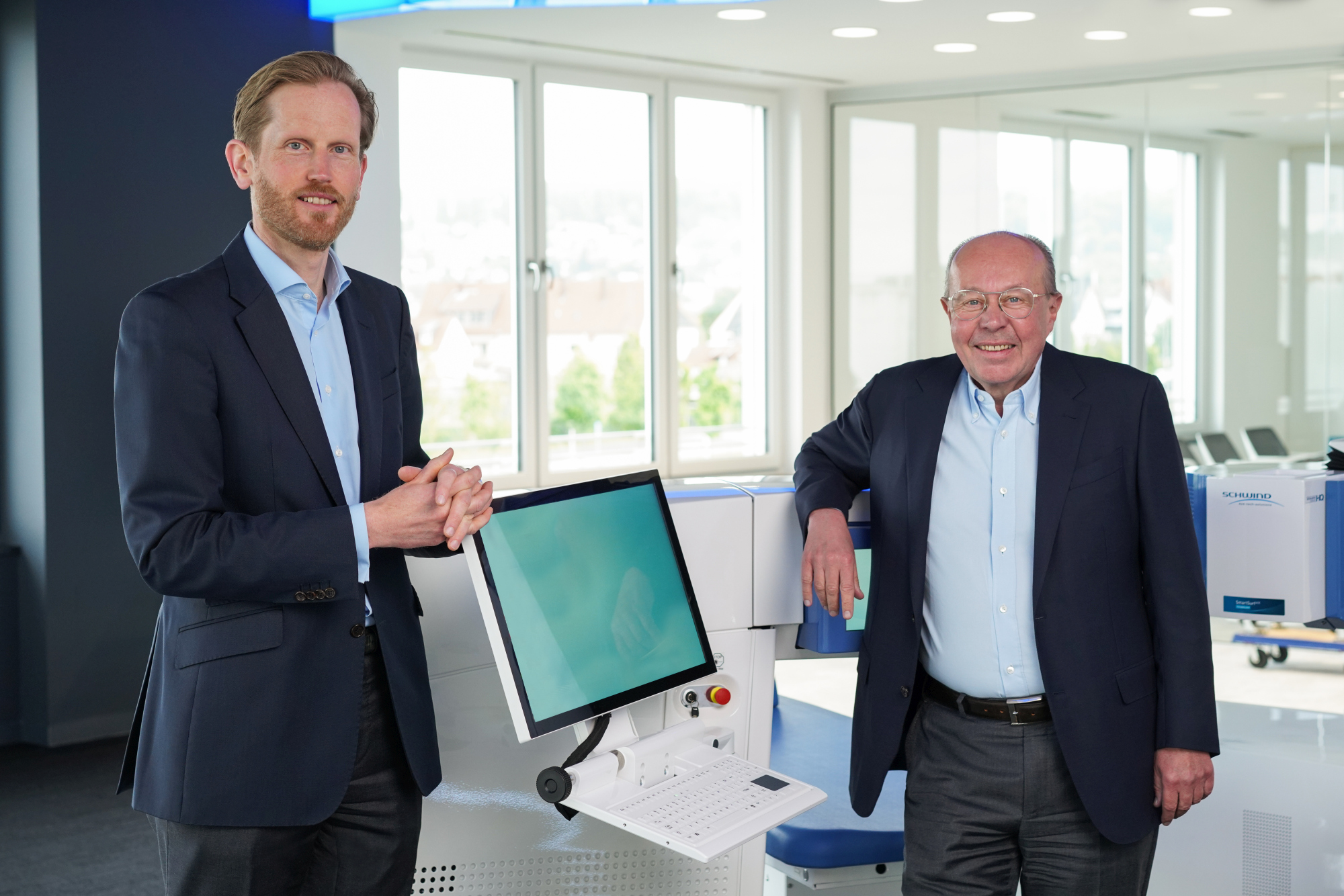 Rolf Schwind, CEO (on the right) and Domenic von Planta, COO (on the left), are proud to mark 30 years of success for SCHWIND eye-tech-solutions in refractive corneal surgery.