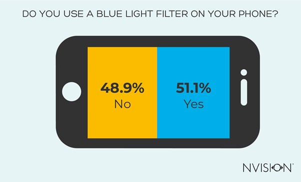 - Almost half 48.9% not using blue light filters on smartphones
