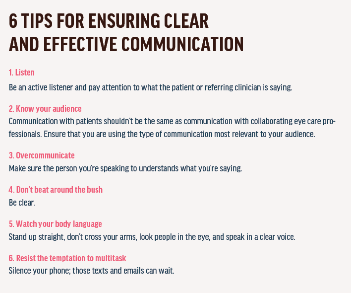 Collaborative care is all about communication. Communication between ophthalmologists and optometrists, communication between patients and doctors, and communication between office staffs are all critical to successful collaboration. However, it’s all too easy for a misstep to occur in the various routes of communication among these groups. The OD might say something inaccurate to the patient about surgical options, or the patient could misunderstand a comment the surgeon makes about a particular lens choice for surgery. It doesn’t take much to create a problem in what can already be a complex chain of interactions.