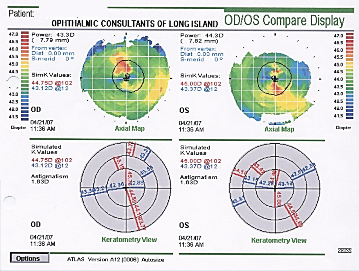 A 67-year-old woman came to my office for a second opinion. She was extremely unhappy after her premium IOL surgery. She stated that she had paid a significant amount out of pocket for the implant, and it was, in her words, “a waste of money.” She claimed that her distance and near vision were both bad, and that she was disappointed with her quality of vision overall. She noted glare and halos immediately after surgery, and they never fully resolved.