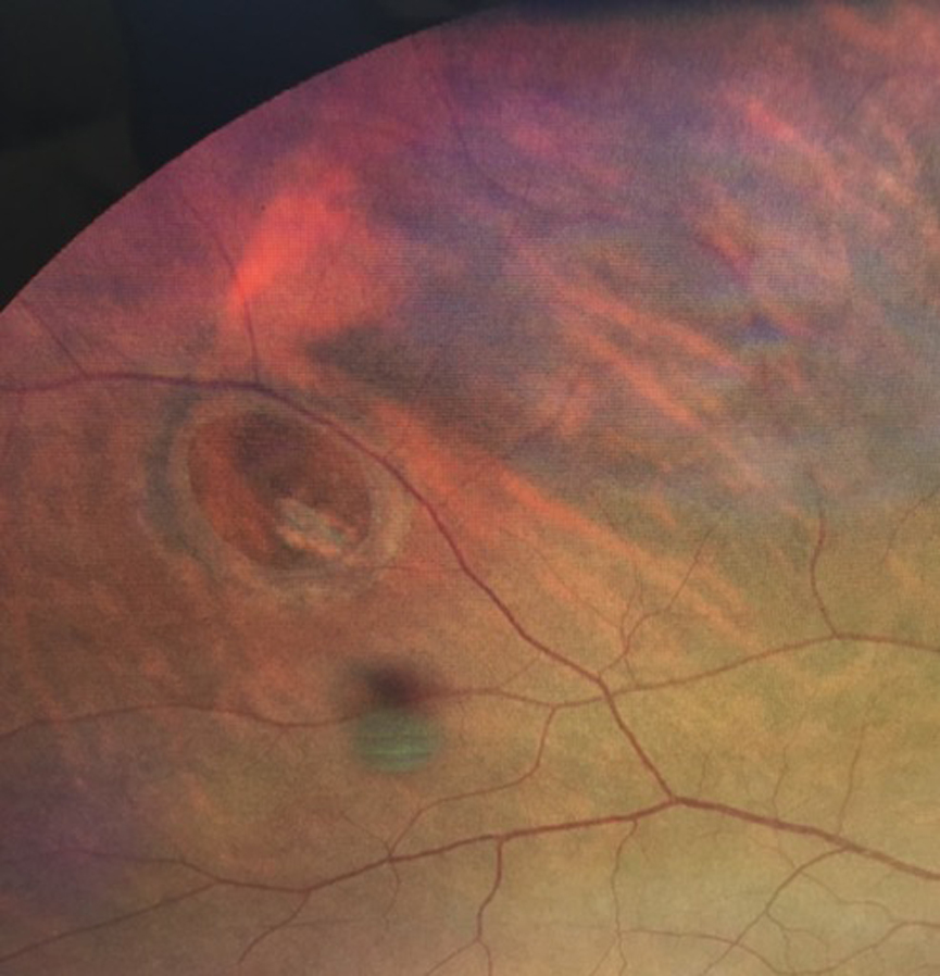 Figure 2. A patient presented with a retinal break. Acute symptomatic posterior vitreous detachment is one cause of retinal breaks.
