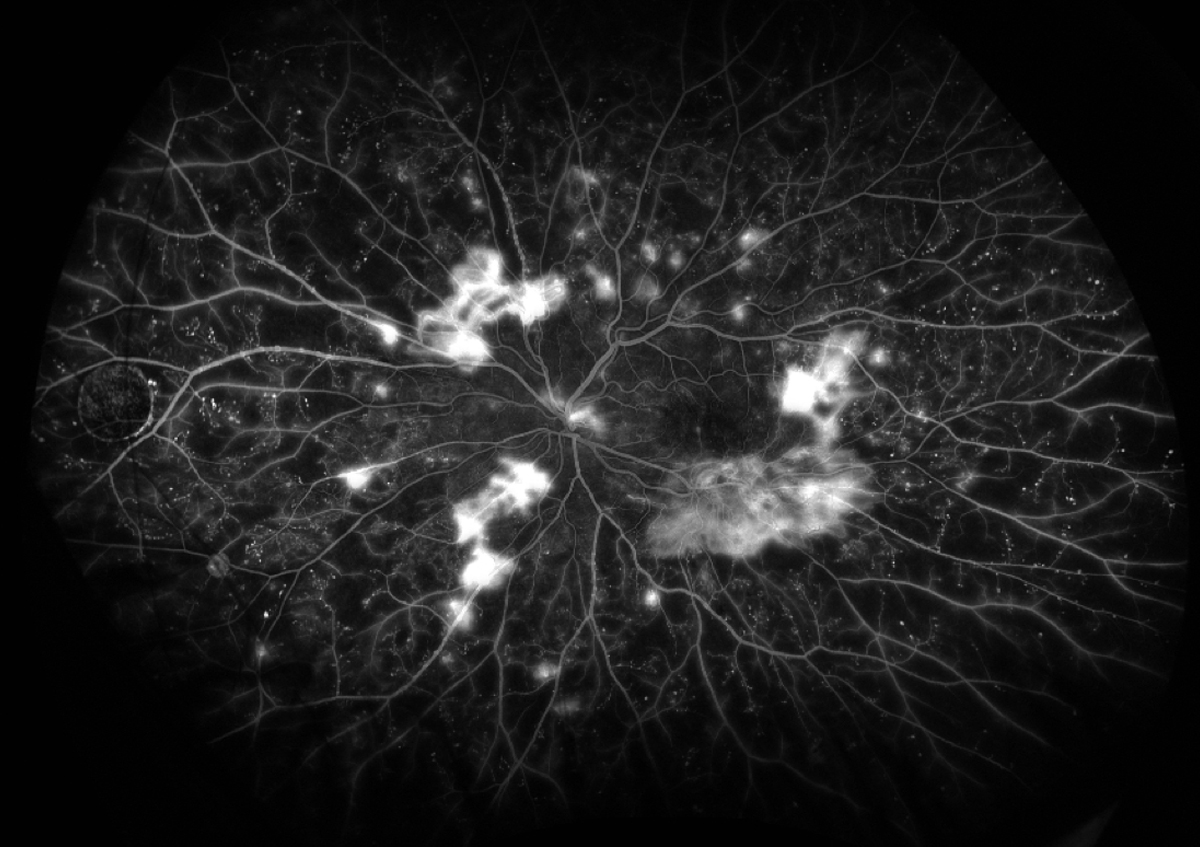 Figure 2. Proliferative diabetic retinopathy as seen on ultawide-field fluorescein angiography.